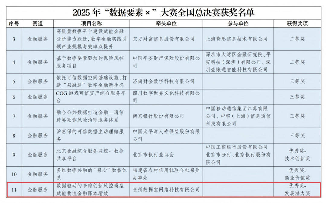 关于2025年“数据要素×”大赛全国总决赛获奖项目名单的公示