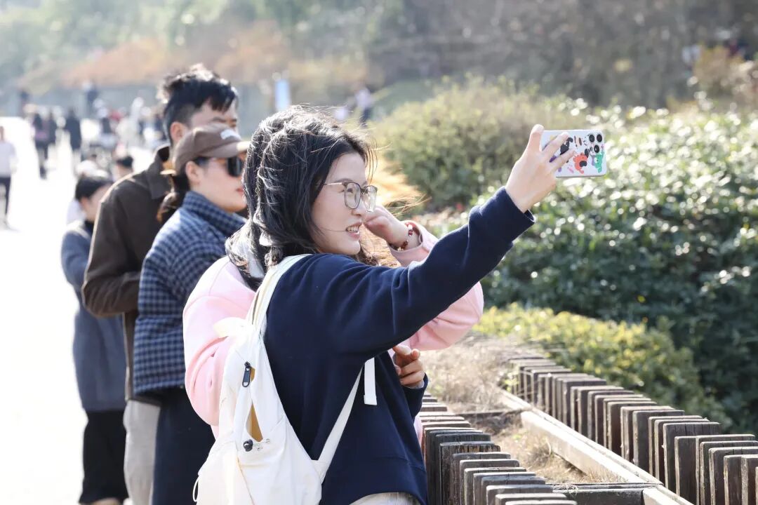 随后,探访队伍来到月亮湖公园。湖光山色、春风醉人,月亮湖公园的良好生态和迷人景致,让青年们心情舒畅,纷纷拍照打卡。